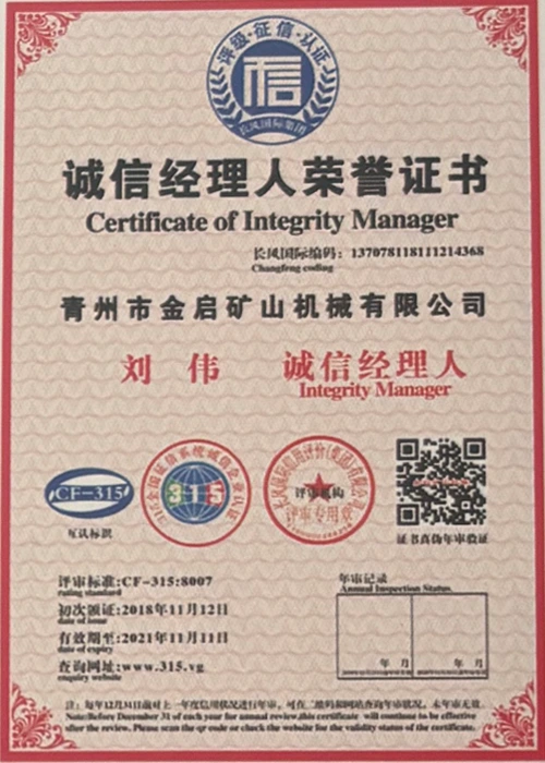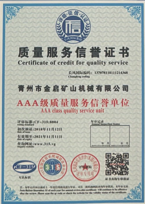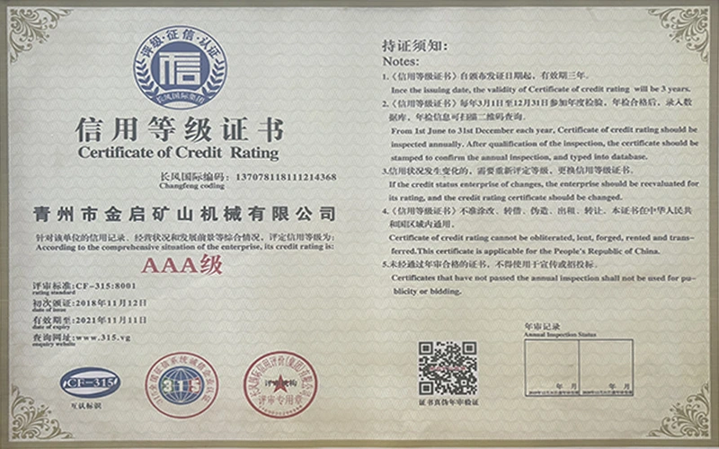 سخت کوالٹی کنٹرول اور مسلسل تکنیکی جدت طرازی پر بھروسہ کرتے ہوئے صنعت میں برسوں کے گہرائی کے تجربے کے ساتھ، کمپنی نے متعدد مستند قابلیت، سرٹیفیکیشنز اور پیٹنٹ سرٹیفکیٹ حاصل کیے ہیں، جن میں ISO کوالٹی مینجمنٹ سسٹم سرٹیفیکیشن، کان کنی پروڈکٹ سیفٹی سرٹیفیکیشن، نیز متعدد ایجادات کے پیٹنٹ اور یوٹیلیٹی ٹکنالوجی کے ماڈلز کے لیے اپ گریڈنگ ٹیکنالوجی اور اپ گریڈ ٹیکنالوجی شامل ہیں۔ گہرا تکنیکی طاقت اور مطابق پیداوار کی ضمانت کا مظاہرہ کرنا۔
